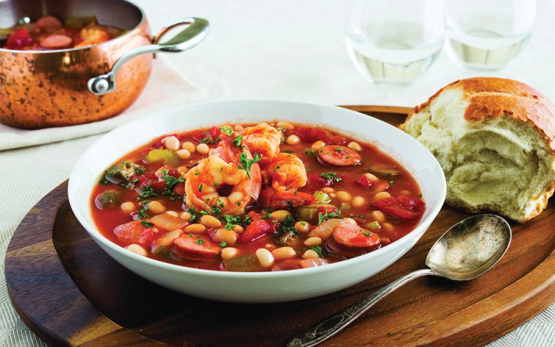 - Bring to boil; add okra and cook 6 to 8 minutes. Stir in shrimp, cook 3 to 4 minutes until shrimp and okra are cooked. Serve with whole grain bread or cornmeal muffins.