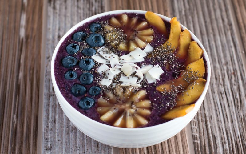 The combination of fruit, chia seeds and coconut chips in this breakfast smoothie bowl provides you with a wealth of vitamins and minerals. The inclusion of Zespri SunGold Kiwifruit alone adds potassium, fibre and actinidin. It also provides your daily vitamin C needs. Make this smoothie bowl the night before if you’re pressed for time in the morning.