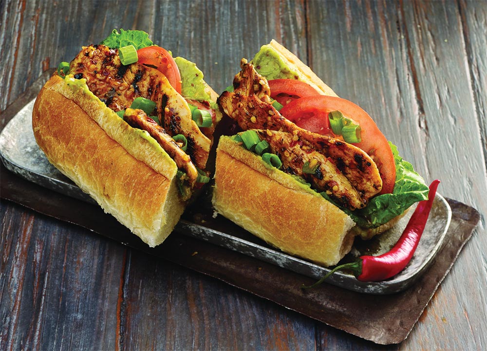 Grilled Chicken Po Boy Sandwich with Spicy Mustard Sauce